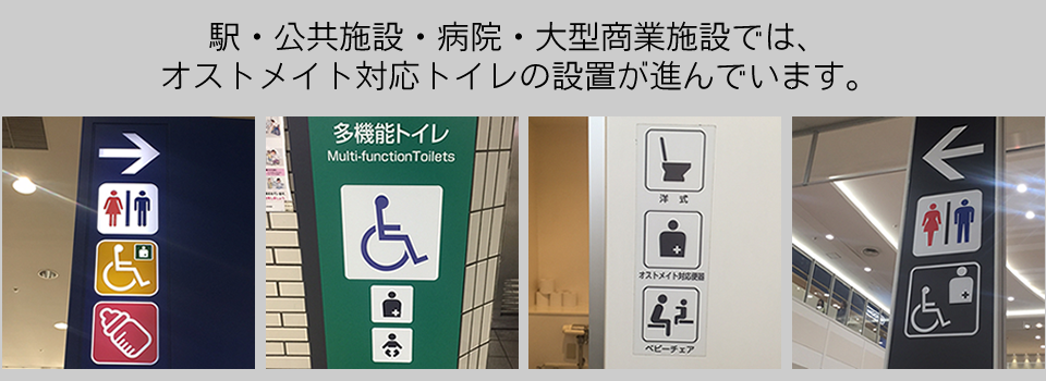 最近では「オストメイト」という言葉が、一般的に浸透し始めてきました。お腹の辺りに十字マークをつけたピクトサインを目にする機会も増えてきています。「オストメイト」と呼ばれる、人工肛門や人工膀胱を造設した方たちにとって、一般的なトイレでの排泄は困難であり、各種専用の設備が設けられています。