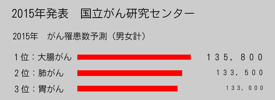 国立がん研究センターが2015年に発表した、がん罹患数予測では、男女合わせると「大腸がん」が1位となりました。